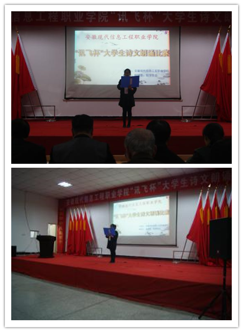 经过各系部的层层选拔,当晚共有14名同学入围本场决赛。赛场上精彩不断,经济管理系高慧慧同学一首催人泪下的诗歌《再别康桥》,真情全释了诗人徐志摩1928年秋重到英国、再别康桥的情感体验,表现了一种含着淡淡忧愁的离情别绪。她几经落泪,台下观众也被其深深打动,凝泪细听;机电工程系房天乐同学带来的朗诵文章是朱自清的散文《春》,文章格调欢快明朗,让人振奋,它以景物描写背后炽热的感情与坚定的信念感染人、打动人;房同学的诵读把春回大地万物复苏演绎的淋漓尽致。本场选拔赛,经济管理系的高慧慧同学获得一等奖;艺术传媒系张雄伟、经济管理系郝杨洁等其它选手分别获得二等奖、三等奖和优秀奖。