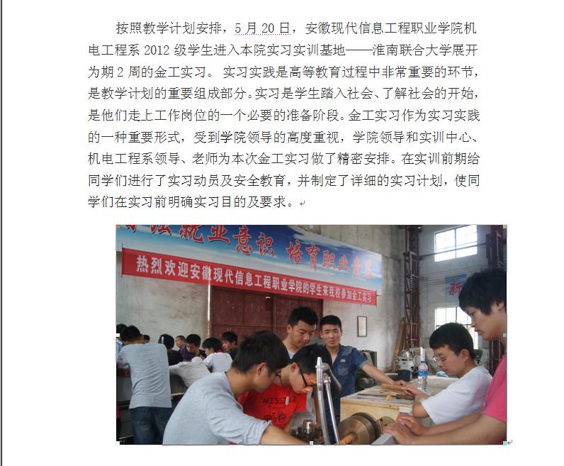 机电工程系12级学生到beat365实验实训基地——淮南联大实习