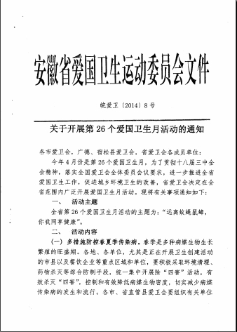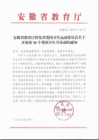 安徽省教育厅转发省爱国卫生运动委员会关于开展第26个爱国卫生月活动的通知