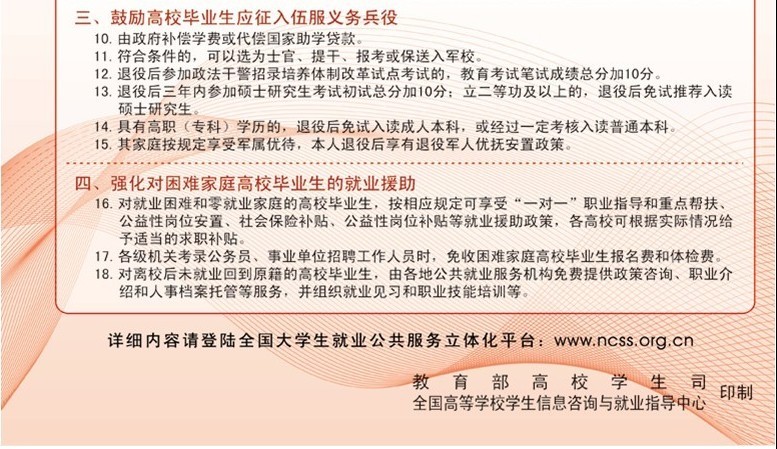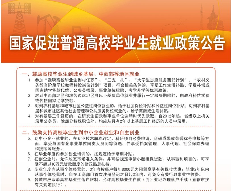 国家促进普通高校毕业生就业政策公告