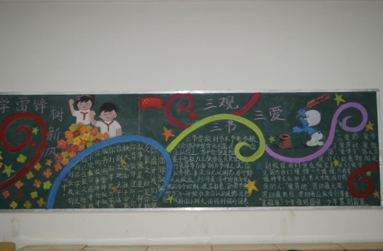 同学们以黑板报的形式大力宣传学雷锋树新风。