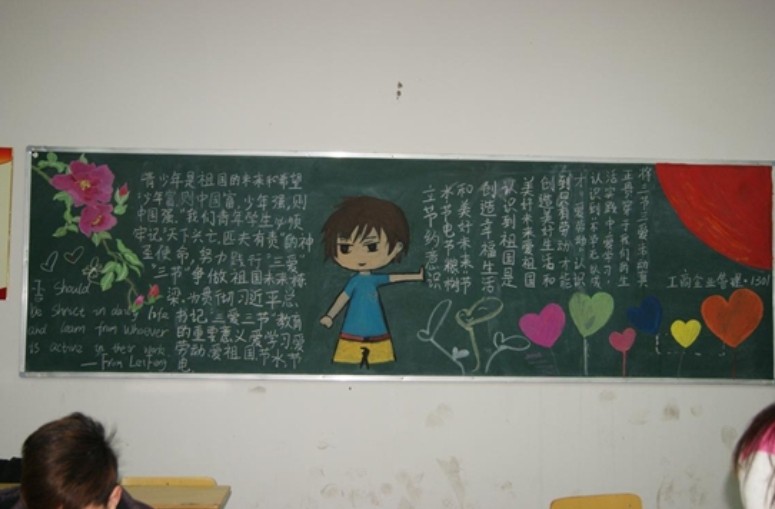 黑板报以“三观”“三爱”“三节”教育为切入点,帮助大学生们形成健康正确的成长取向。