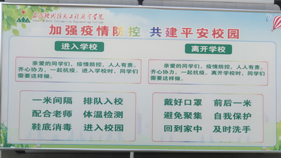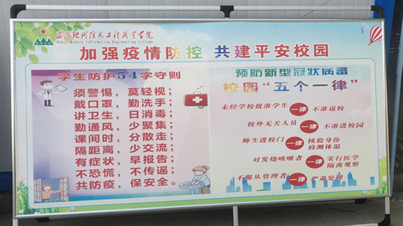 为进一步践行初心使命,体现责任担当,让全院教职工和学生积极投身疫情防控阻击战中去。 4月25日,学院以“校园疫情防控”为专题内容的校园宣传展板全面登场。