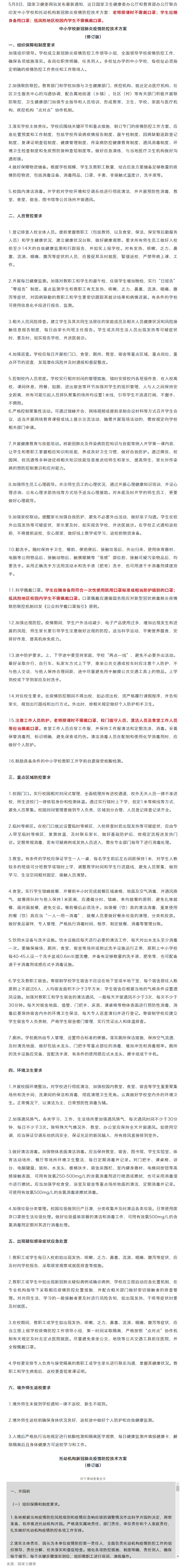 国家卫健委:低风险地区 中小学生 不需佩戴口罩