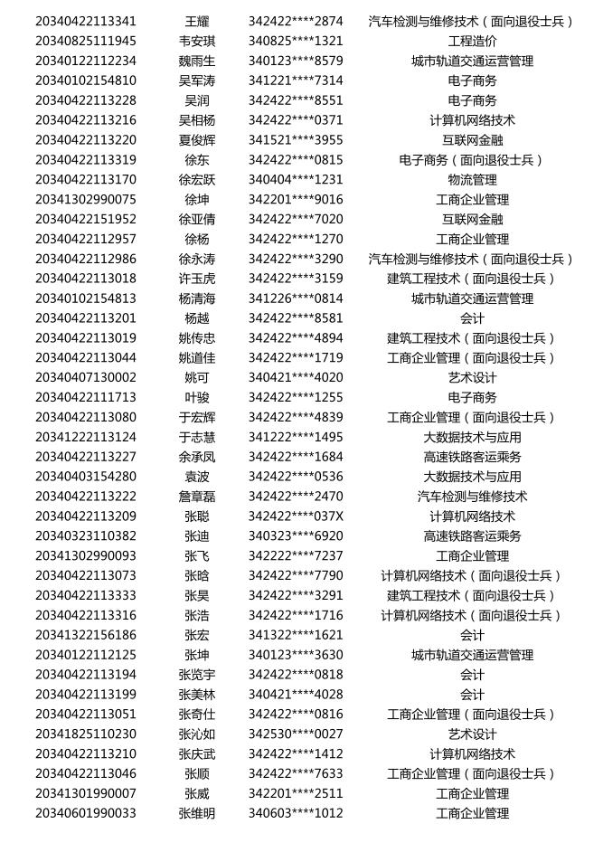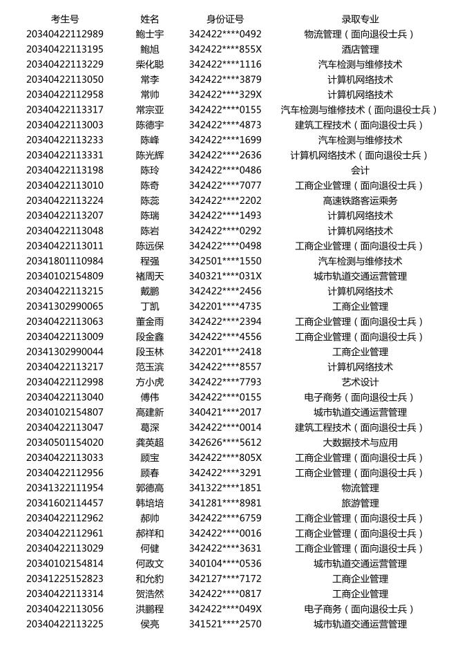 beat3652020年分类招生考试拟录取名单公示
