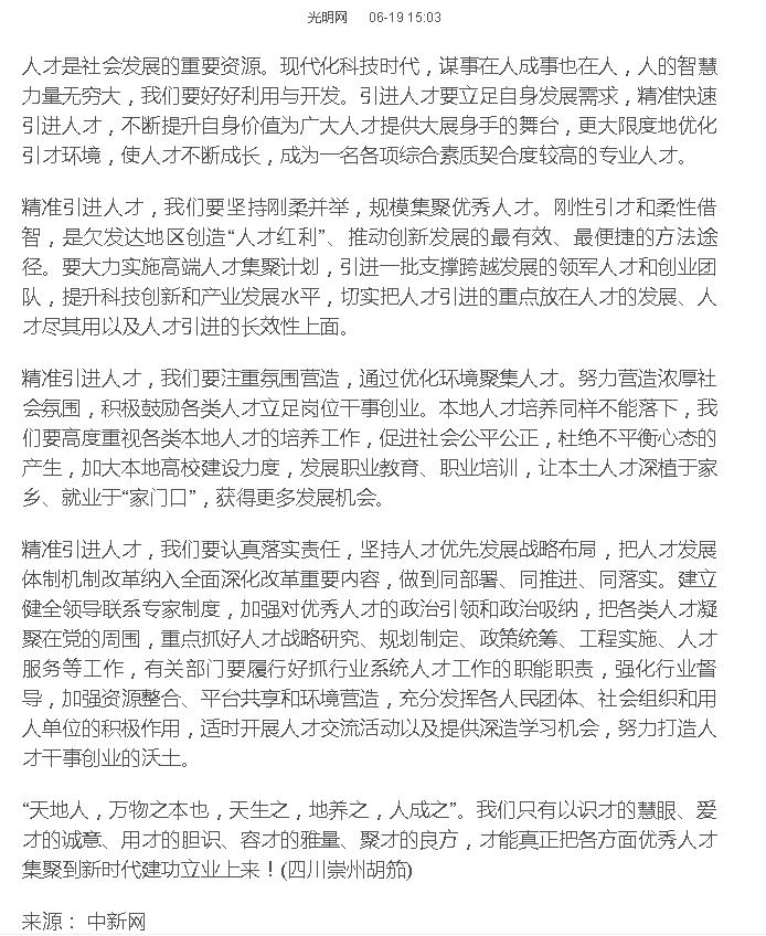 抓好人才资源 精准引进人才