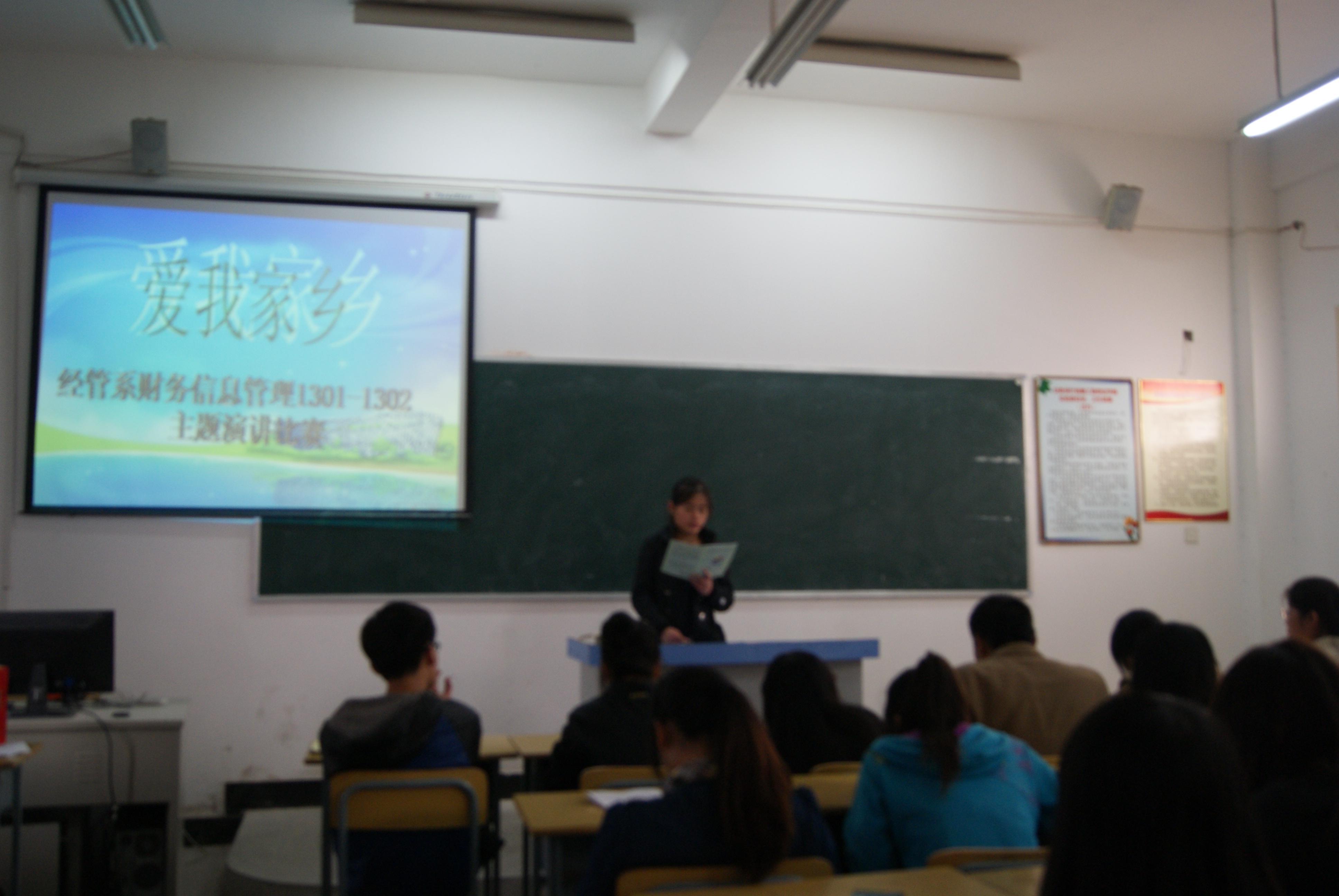 为了增强同学们的演讲能力,表达自己对家乡的情感经济管理系财务1301和1302两个班联合举办《爱我家乡》演讲比赛。