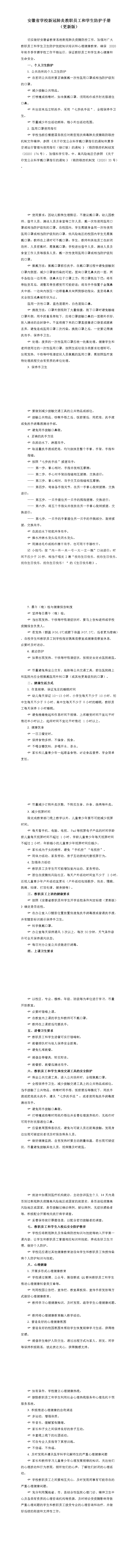 [疫情防控专题]安徽省学校新冠肺炎教职员工和学生防护手册(更新版)