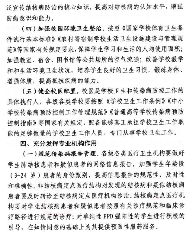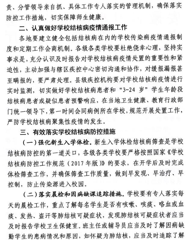 关于进一步加强学校结核病防控工作的通知