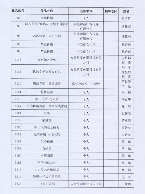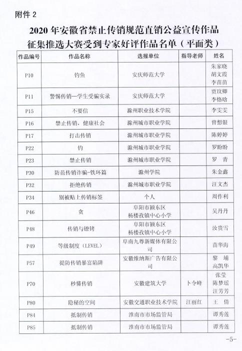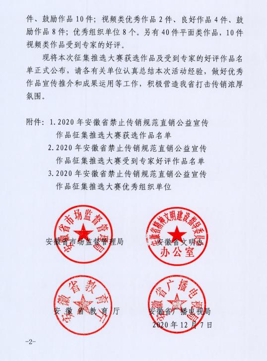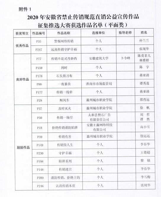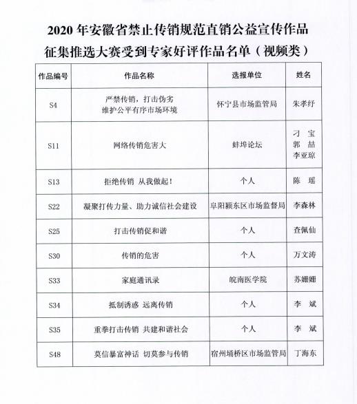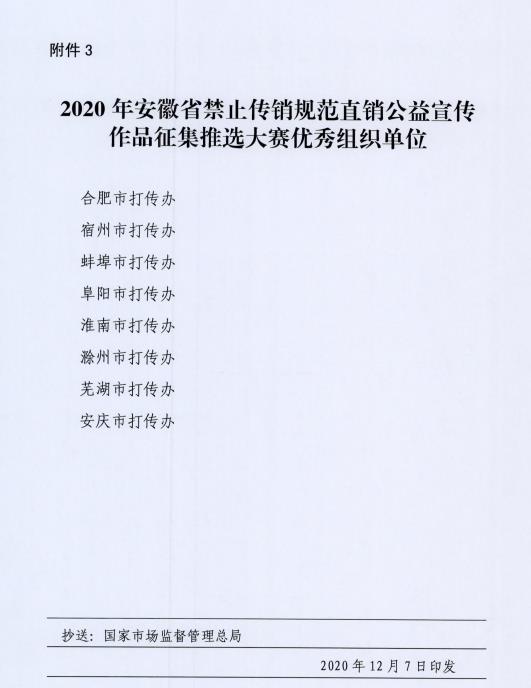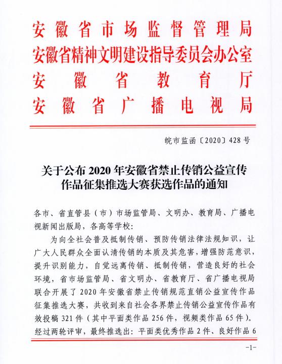 关于公布2020年安徽省禁止传销公益宣传 作品征集推选大赛获选作品的通知