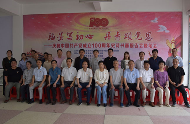 活动期间,莅临学院“翰墨写初心.丹青颂党恩——庆祝中国共产党成立100周年史诗书画报告会暨笔会”系列活动的领导、嘉宾合影留念。