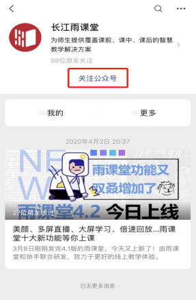 1、微信搜索并关注公众号:长江雨课堂