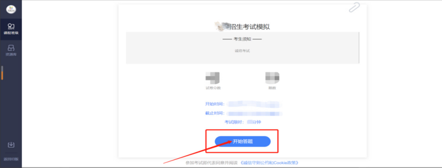 4.进入考试页面,点击开始答题