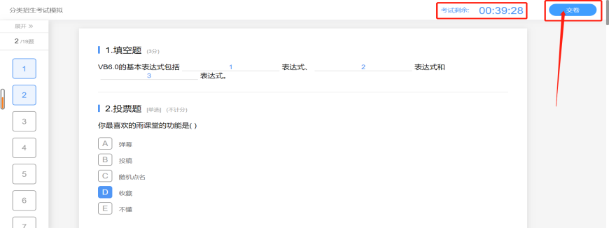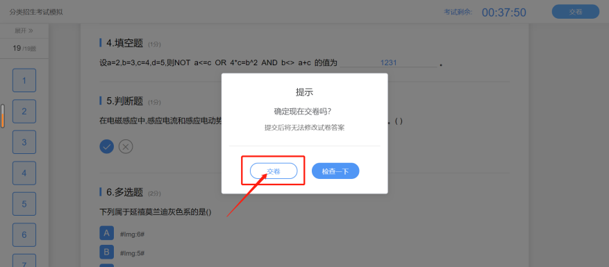 5.完成考试、交卷