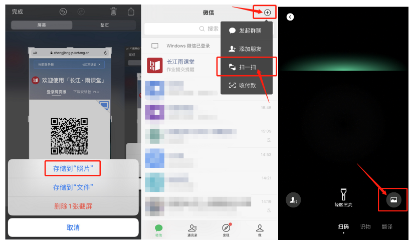 手机截图二维码,然后用微信扫一扫,调取相册中刚刚截图的二维码