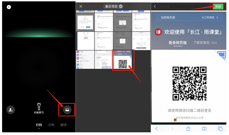 (二维码截屏——用微信扫一扫调取刚刚截图的二维码,识别登录——返回浏览器进入我听的课)按照下面手机网页版的流程进行考试。