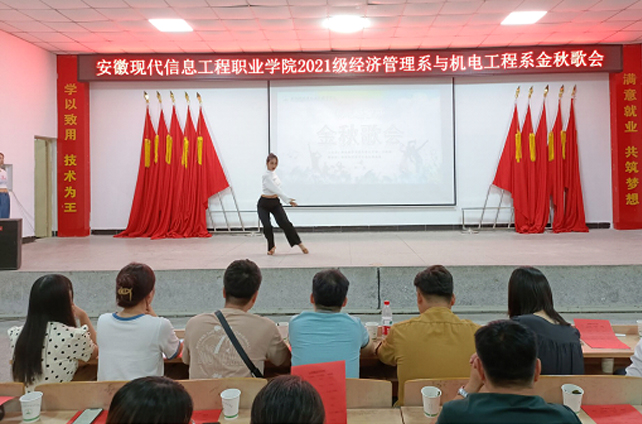 9月27日下午,由学生会文艺部承办的经济管理系与机电工程系“金秋歌会”在学院多功能厅热烈举行,院领导曹学华及团委、工会及有关处室、系部负责人,机电经管系全体班主任和学生参加了活动。
