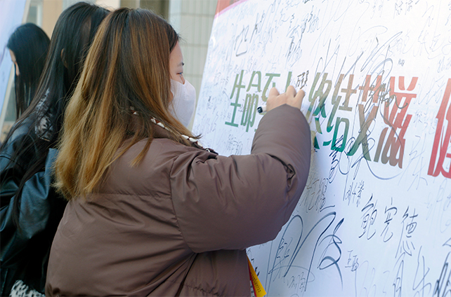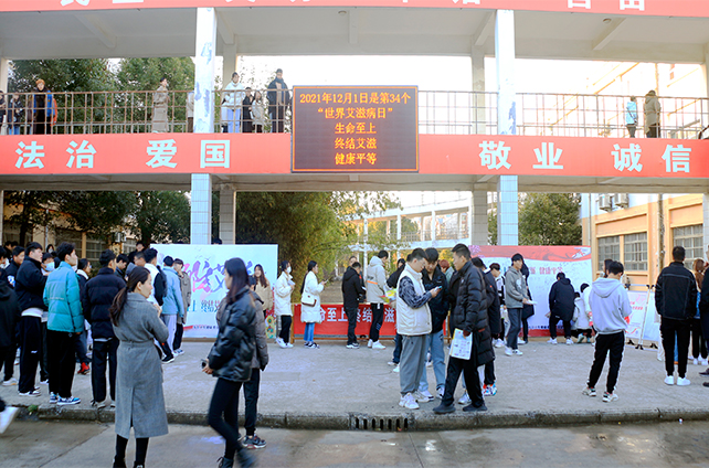 2021年12月1日是第34个“世界艾滋病日”,为进一步落实《教育部办公厅国家卫生健康委办公厅关于切实加强新时代学校预防艾滋病教育工作的通知》有关要求,推进“十四五”时期学校预防艾滋病教育工作的开展,遏制青年学生人群中艾滋病的传播和流行,促进青年学生身心健康,beat365邀请县疾病防控中心在教学区进行预防艾滋病宣传,全体辅导员和学生共同参加。