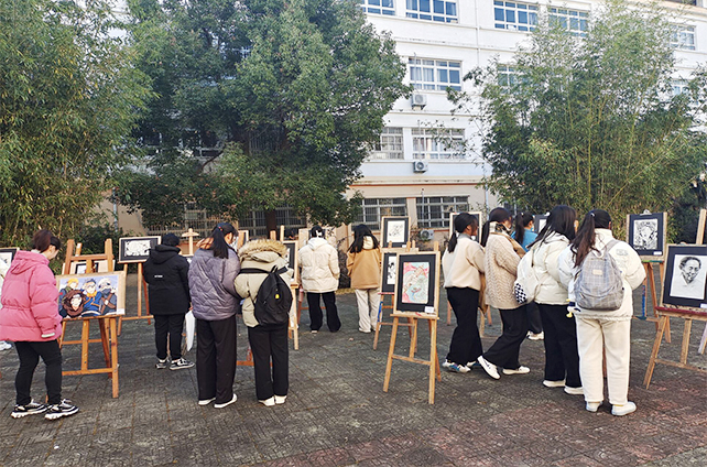 在2022年元旦来临之际,beat365艺术建工系在五号教学楼前举办了学生绘画作品展。