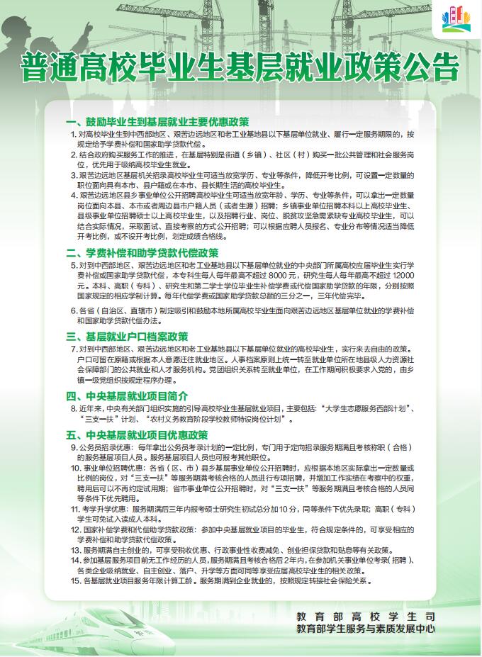普通高校毕业生基层就业、自主创业、应征入伍政策公告