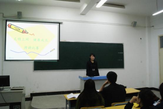 为加强学生的网络道德教育,营造良好的校园文化氛围,树立正确、文明上网的观念, 引导同学们健康文明上网的良好习惯,4月9日晚自习过后,我系在3403教室举办了“文明上网,健康成长”演讲比赛。