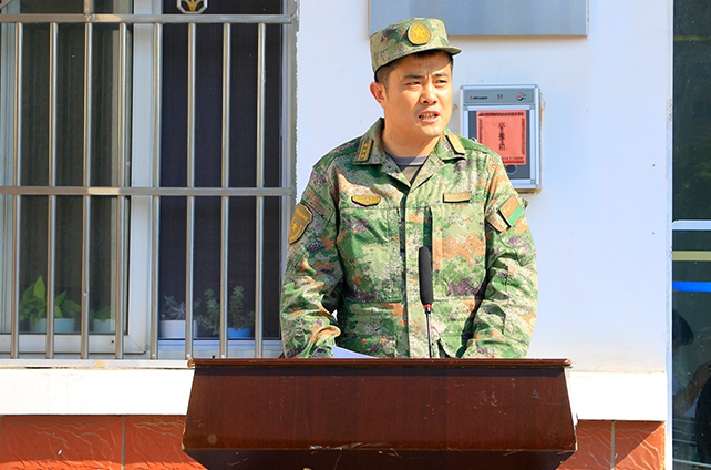 县人武部部长张博作动员讲话,他指出军训是大学生成长成才道路上的一门必修课,是大学生锻炼意志、塑造精神、强健体魄的绝佳机会。他希望,承训教官科学施训、严格要求;参训教师要“以生为本”,关心呵护学生;全体参训学生要听从指挥、顽强拼搏、严于律己、精诚团结,认真完成军训任务。