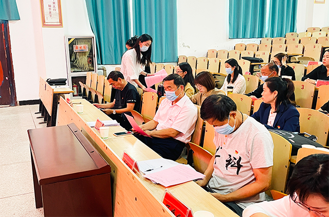 在监票人检查票箱无误后,分发选票全体党员进行投票。