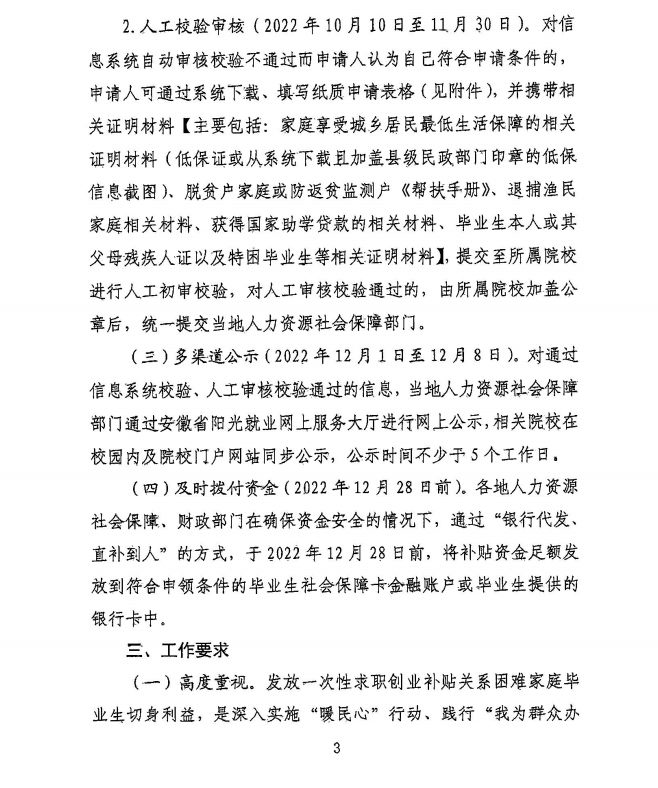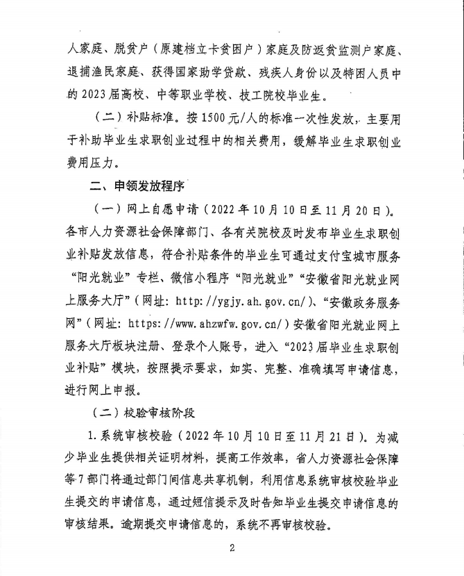 为深入贯彻落实党中央、国务院及省委、省政府稳就业保就业决策部署,多渠道促进高校毕业生就业创业,现就做好2023届毕业生一次性发放求职创业补贴信息化发放工作有关事宜通知如下,请各学院认真附件内容并积极宣传,将文件及时转发到毕业班微信、QQ群,勿必让每一学生知晓,确保符合条件的学生都能够享受政策。