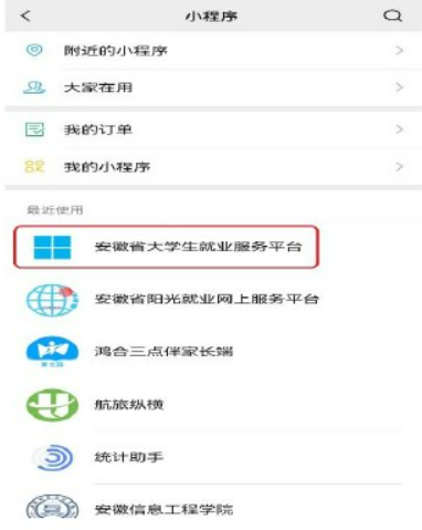 第一步:通过微信小程序搜索“安徽省大学生就业服务平台”
