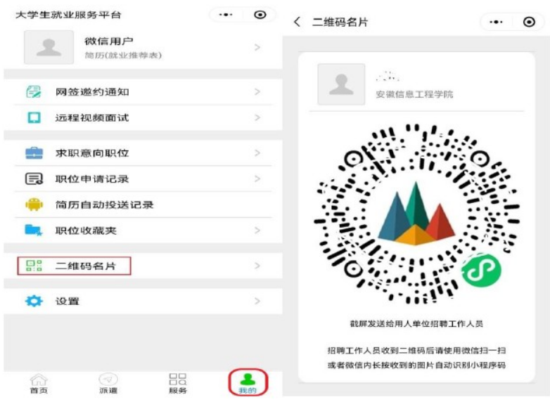 第四步:点击【我的】【二维码名片】,截屏“生成的二维码”发送给签约单位的工作人员。