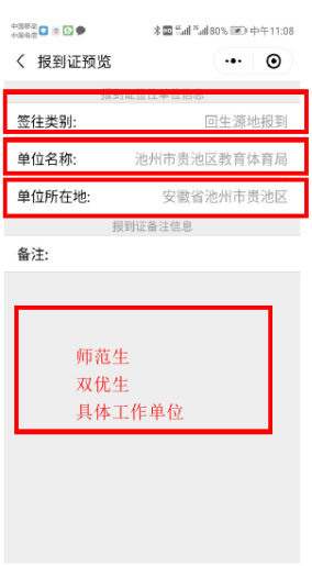 该页面提供毕业生本人的报到证预览,不需要毕业生维护。毕业生在“报到证预览”页面,重点检查图 2-4红框部分的信息是否正确。说明:此处“备注”里显示具体工作单位只有签订了就业协议书且就业协议书上有2个公章的才会打印出内容(此时打印出的是具体的公司名称),升学的毕业生无就业报到证,就业信息录入后就无法进行“报到证预览”,属于正常现象。