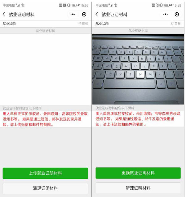 对于已经落实工作的,包括升学和出国出境,须上传其就业证明材料,一旦被审核后,将不能修改。