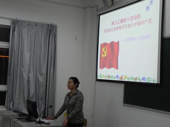 为适应新形势下党建发展的要求,进一步提高入党积极分子的思想水平和政治素养,11月8日晚,经济管理系党总支书记为入党积极分子上了一堂“树立正确的入党动机以实际行动争取早日加入中国共产党”的党课。