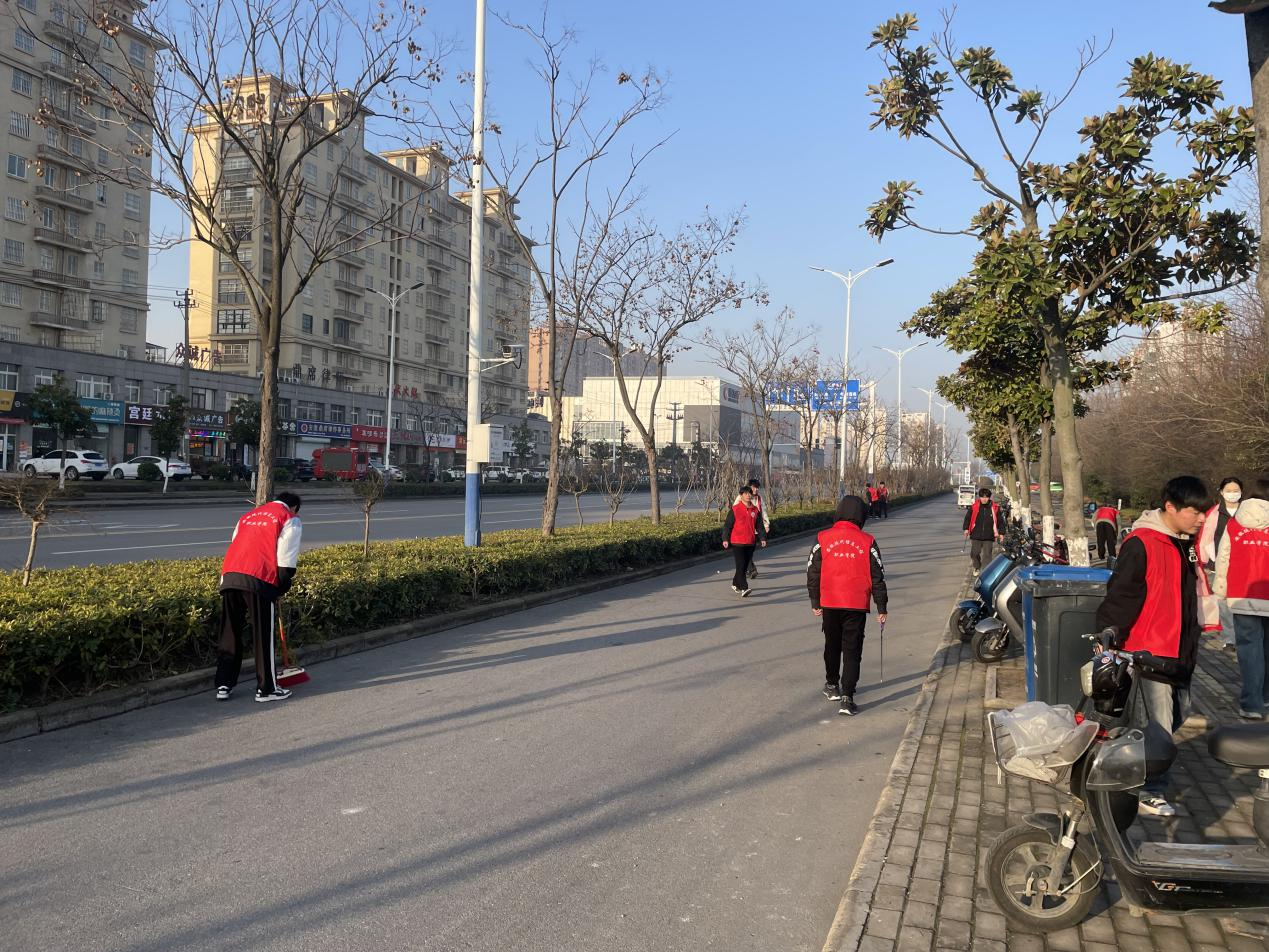 2024年3月5日院团委组织学院志愿者前往寿县通肥南路进行“文明创新,全民保洁”社会实践活动。