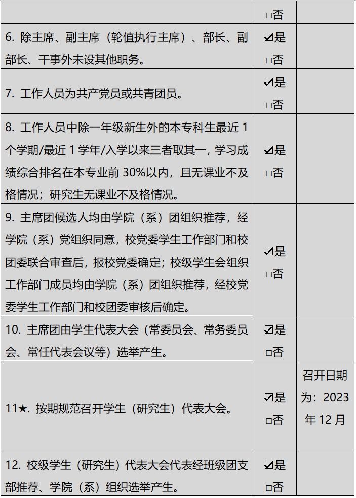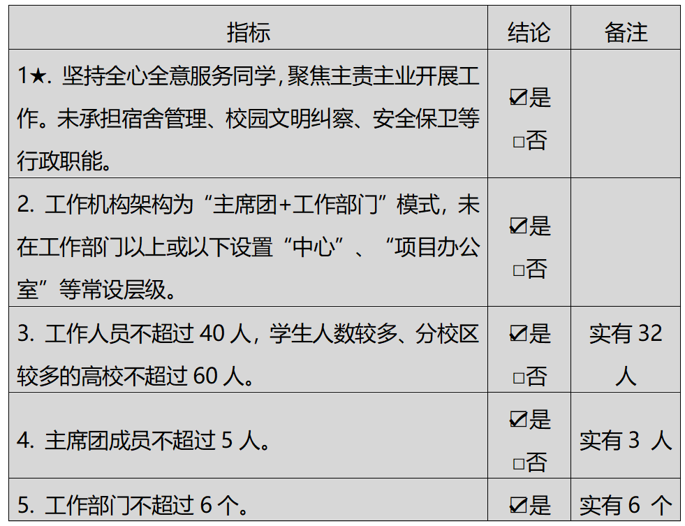 校级学生会组织改革自评表