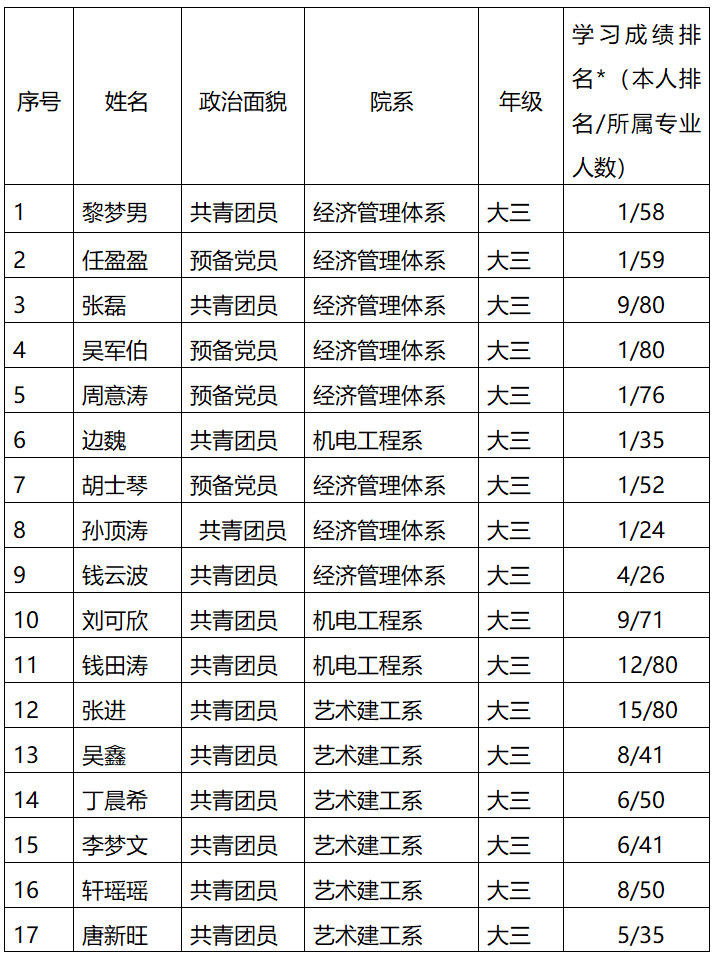3、学习成绩优良,排名均在本专业前30%,自入学以来从未有过公共必修课、专业必修课或限选课(不含双学位课程、辅修课)不及格;