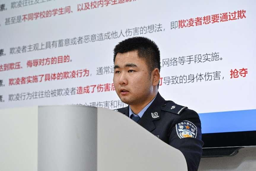 新城派出所袁航警官带来了关于校园欺凌的专题讲座。袁警官用真实的案例,深入浅出地分析了校园欺凌的类型、危害及法律后果,鼓励同学们面对欺凌勇敢说“不”,并提供了有效的求助渠道和自我保护技巧。同时,袁警官强调了建立积极健康的人际关系的重要性,倡导以爱和理解化解矛盾,共同营造一个和谐温馨的校园环境。