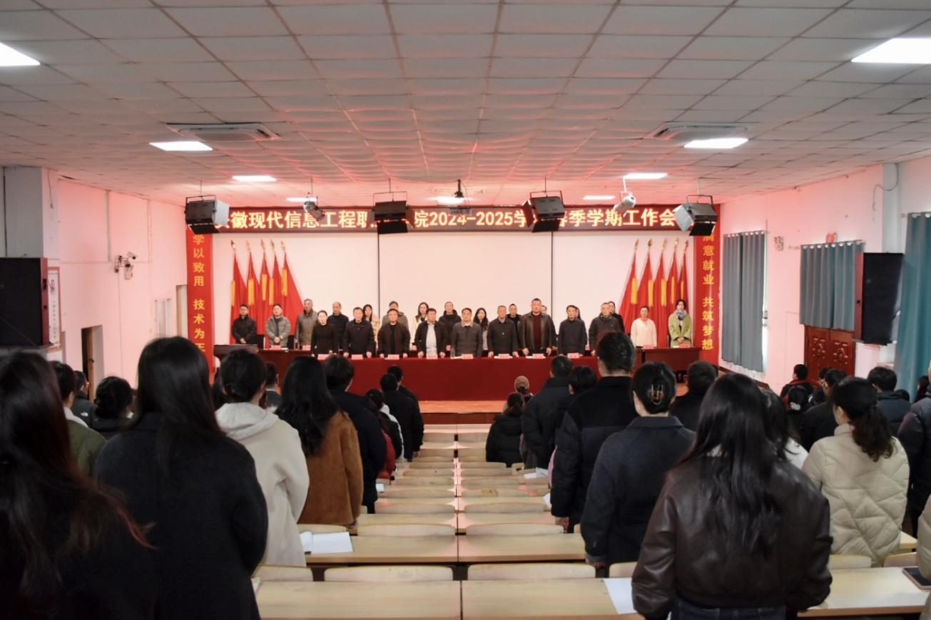 2025年2月16日上午10时学院召开2024-2025学年春季学期工作会议,督导专员、党委书记卢义忠,副董事长、执行董事曹学华,党委副书记、院长肖成兵等学院党董政领导班子成员及全体教职工参会,会议由党委委员、工会主席、学生处处长吴长奇主持。