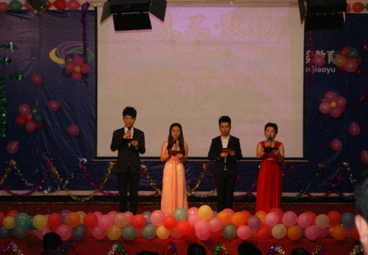 晚会在一段优美的开场舞后拉开帷幕,主持人宣布晚会正式开始,晚会首先对13级优秀学生和老师进行表彰和颁奖。