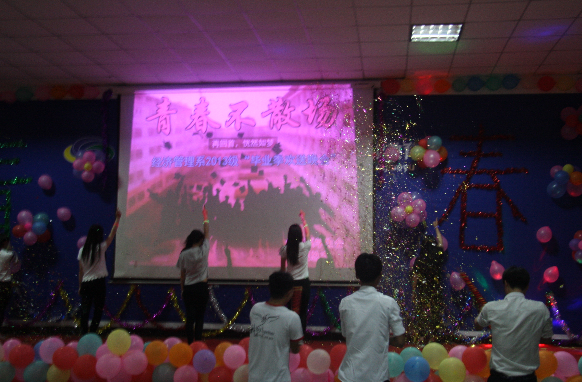 美丽的校园曾经留下了他们青春的足迹和风采,他们即将挥手向母校告别,开始人生新旅程。5月13日晚19:30分,经济管理系在多功能报告厅为2016届毕业生举行欢送晚会,院长谈洁玉、副院长陶传敏、院党委委员、经管系主任刘洁萍、院党委委员、院办主任李景乐、信息工程系主任陈浩信、思政部和基础部主任岳治平等领导及经管系全体师生和各系部分同学到场观看了演出。