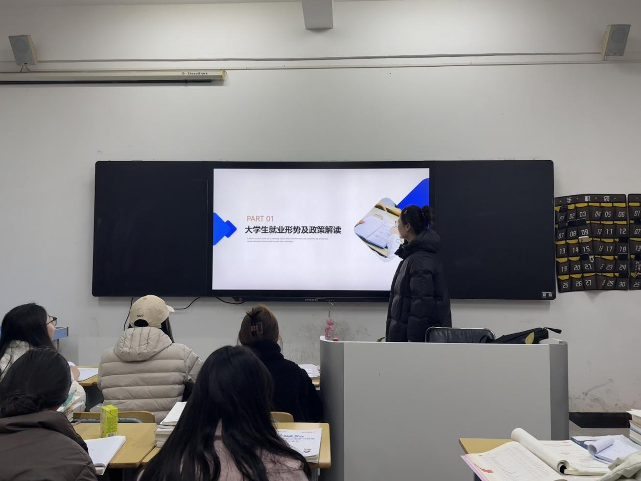 为帮助大三毕业生更好地规划职业方向,提升就业竞争力,近期,机电经管系各班级利用早晚自习时间,开展毕业生就业指导讲座,各班辅导员担任主讲。