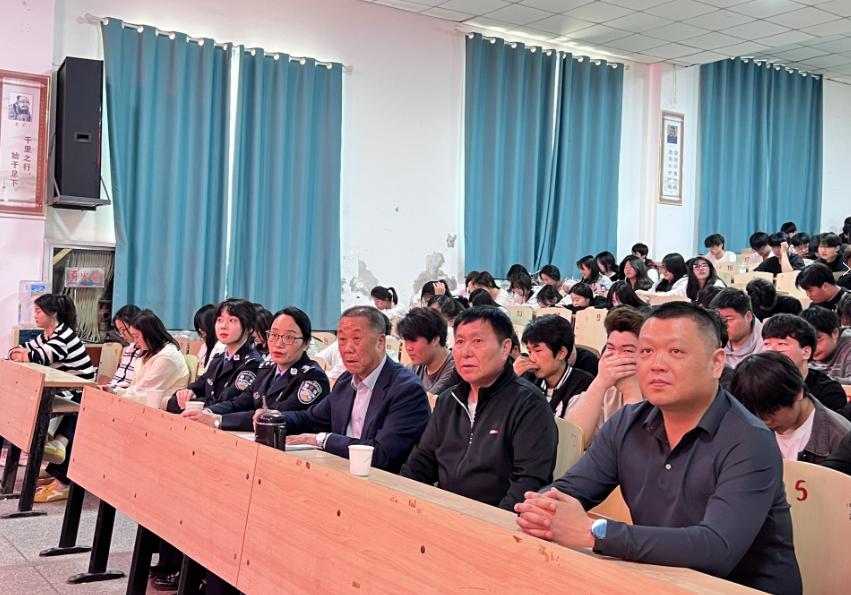 出席本次讲座的嘉宾有寿县公安局新城派出所一级警长蔡锐锐,二级警员袁航、吴启贤,以及学院执行董事曹学华,学院党委副书记、院长肖成兵,党委委员、副院长李阳,五年高职部主任庄雪芹,心理健康教师马悦。本次主题讲座,旨在增强学生的安全意识,提升心理健康素养,为学生的成长成才保驾护航。