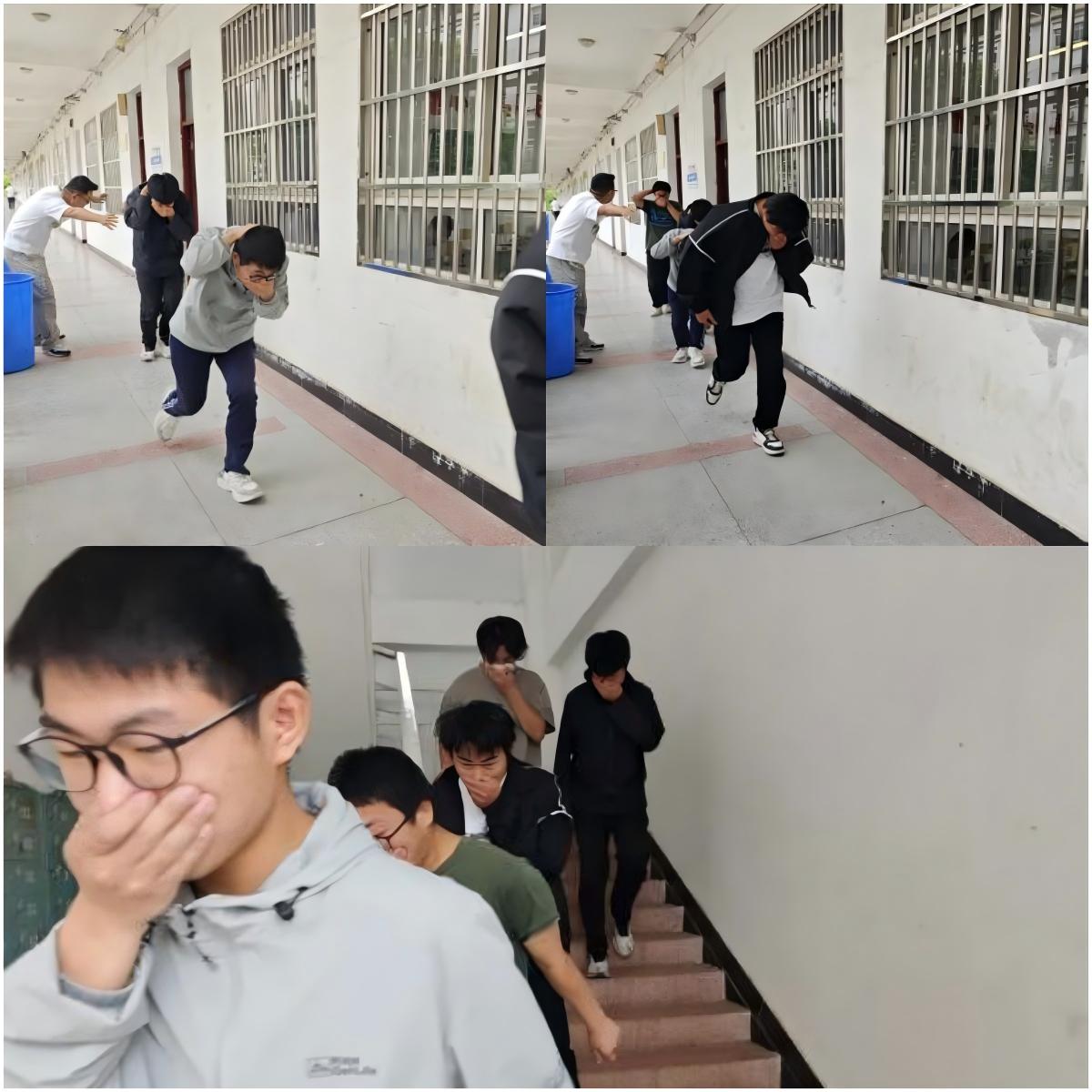 在火灾疏散演练与地震避险演练中,学院模拟真实灾害场景,检验师生应急处置能力。演练前,老师们详细讲解了火灾逃生的要点和注意事项。随着警报声响起,同学们迅速捂住口鼻,弯腰低姿,按照预定的疏散路线有序撤离到安全区域。整个演练过程紧张有序,达到了预期效果,让师生们在实践中熟悉了火灾逃生流程,增强了应对火灾的能力。