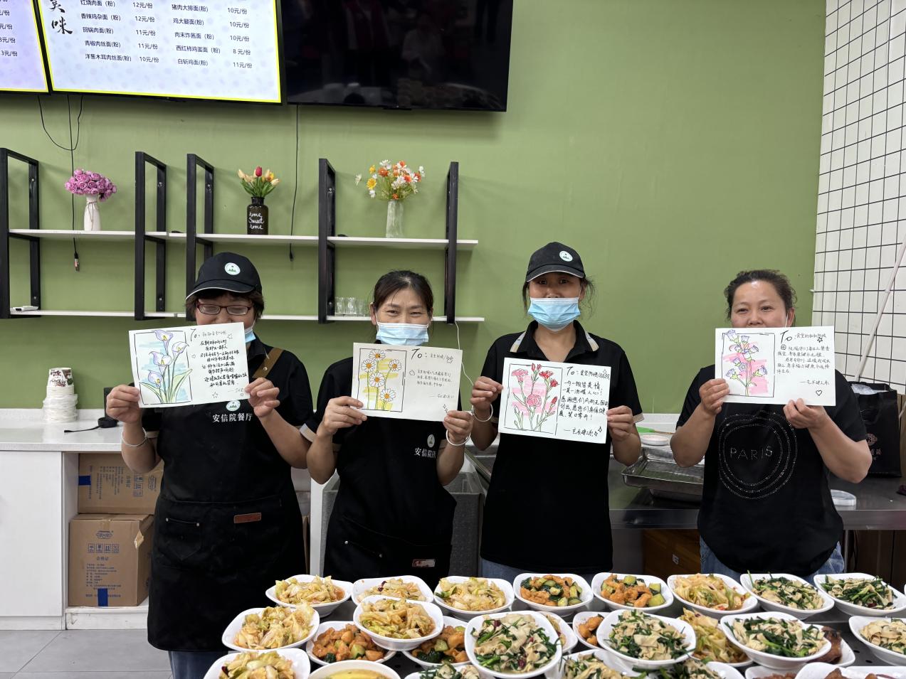 活动中,学生们分发挥专业特长,为保安叔叔、食堂阿姨精心绘制了感恩贺卡。一张张贺卡饱含着对劳动者的敬意与感谢,温暖着每一位校园守护者的心。