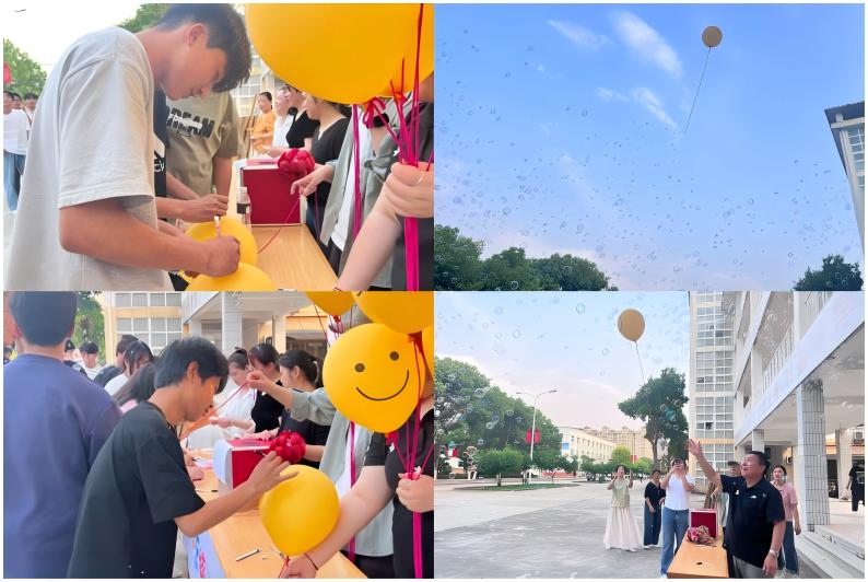 承载希望的笑脸气球环节,将活动推向情感高潮。beat365英国官网网站副董事长、执行董事曹学华亲临现场,与师生共同参与这场心灵之约。曹董在气球上写下对同学们的殷切期许与对学院发展的美好愿景,字迹苍劲有力,饱含深情。随着曹董与全体师生一同松开双手,无数彩色光点冉冉升空,气球在微风中摇曳,与湛蓝天空融为一体。这一刻,气球不仅承载着个人的梦想,更凝聚着学院对莘莘学子的关怀与祝福,将烦恼留在地面,让梦想直上云霄。