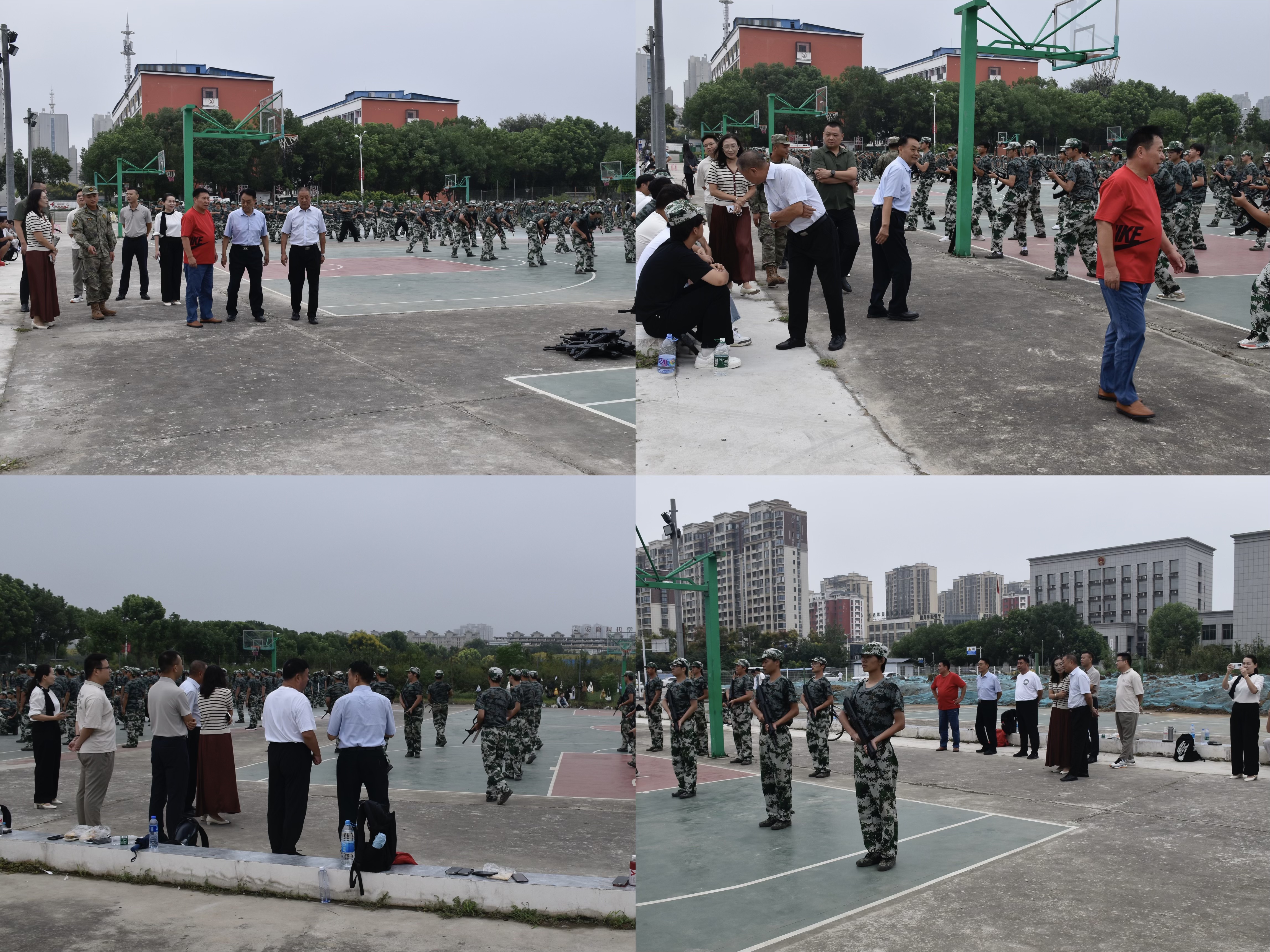 学院领导们来到训练场地,躬亲视察新生们的军事训练项目。同学们军姿挺拔、动作整齐、精神饱满,展现出良好的训练状态,领导们驻足耐心细致观看,并对同学们认真的训练态度和规范的军事动作表示赞许。随后,领导与承训教官亲切交流,详细了解军训日程、科目安排以及学生整体表现。教官们汇报了目前的训练进展,并对同学们在军训中展现出的顽强意志与团队协作精神给予高度评价。领导还关切地询问大家的军训体验与生活情况,同学们普遍反映,虽训练艰苦,但有效增强了体质、磨炼了意志,也提升了纪律意识和集体荣誉感。最后,领导勉励同学们要珍惜军训经历,发扬不怕苦、不怕累的精神,为今后的学习生活奠定坚实基础。