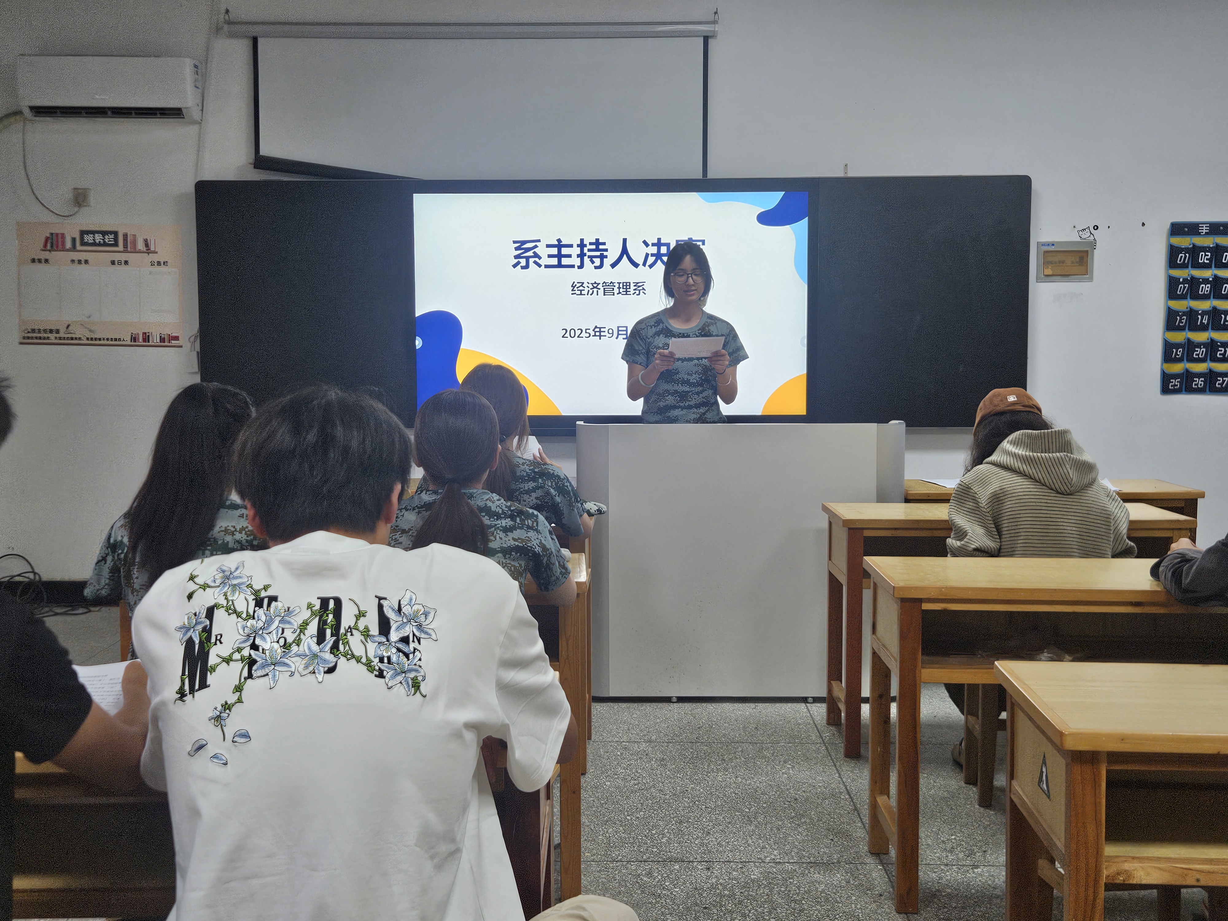 为发掘新生语言表达潜力,培养经管机电文化活动储备人才,9月17日上午11点35分,机电经管系于教学楼 1304 教室举办 “声动校园” 大一新生主持人竞选总决赛。经过前期班级选拔、系部初赛的层层筛选,12名大一新生从40余名报名者中脱颖而出,站上决赛舞台,展现青春风采。本次比赛特邀系部朱庆雅老师、管晓雨老师、袁绪阳老师担任评委,系部江倩副主任及10余名新生代表到场观赛。
