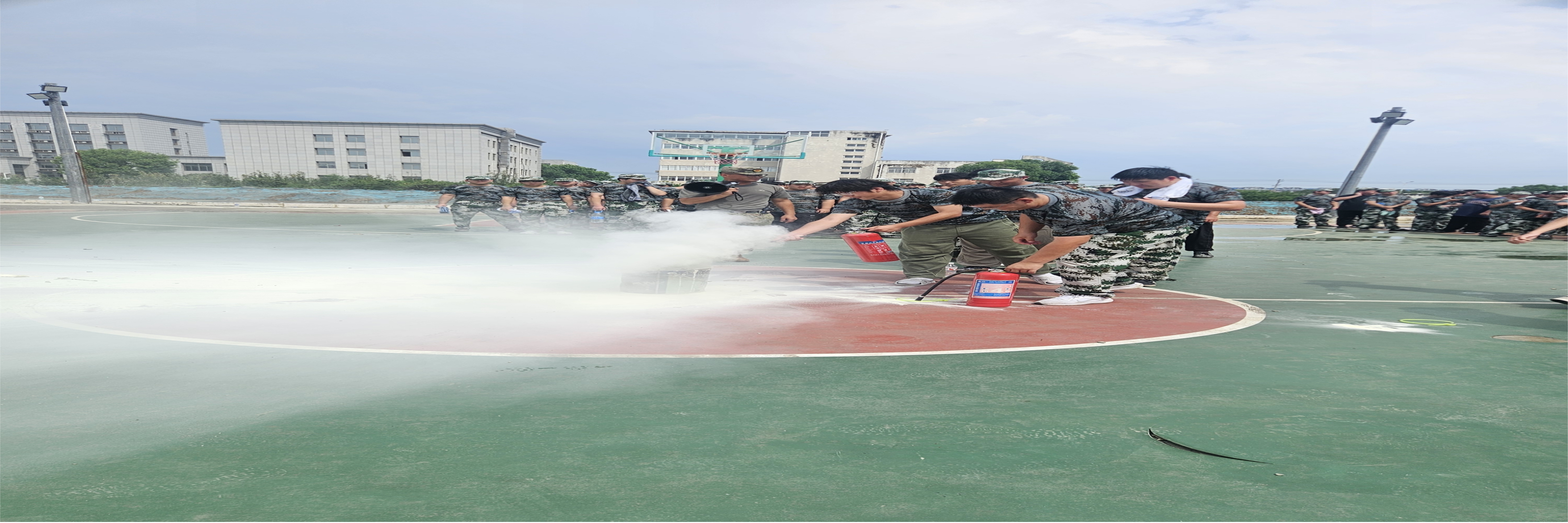理论学习后,2025年9月18日上午9点实操演练环节正式在星光篮球场展开。在教官的指导下,新生们分组参与灭火器使用实操训练。“提、拔、握、压——记住这四个步骤,对准火焰根部喷射!”面对初次使用灭火器的新生,教官手把手示范操作要领,纠正握姿偏差,确保每位同学都能独立完成灭火动作。