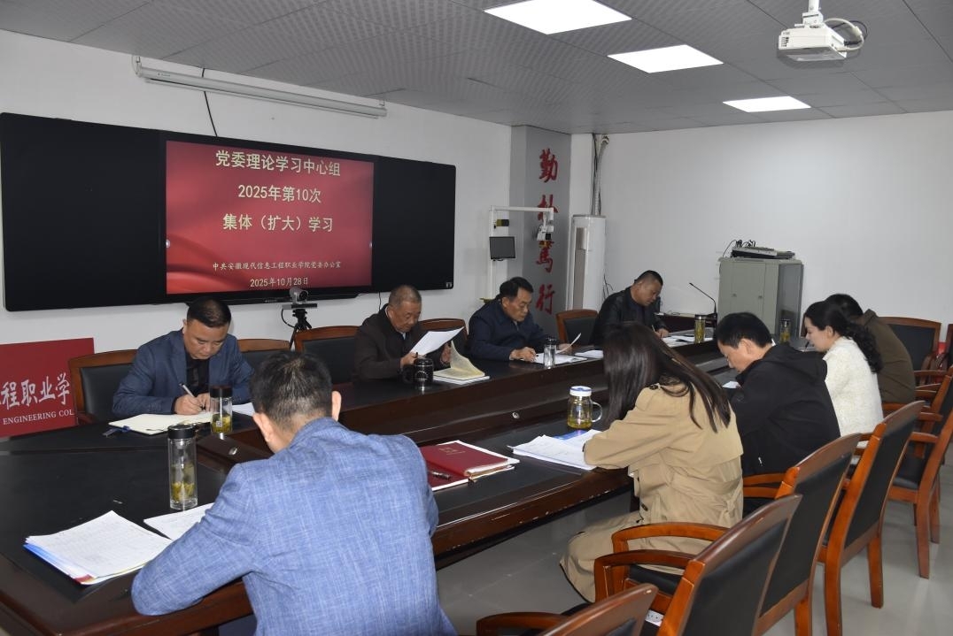 为扎实推进理论武装,着力加强思想引领。2025年10月28日上午,beat365英国官网网站于行政楼二楼会议室召开第十次党委理论学习中心组(扩大)学习会议。会议由学院督导专员、党委书记卢义忠主持,学院领导班子、各党支部书记及各处室系部负责人参加了此次学习。