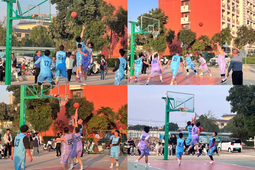 行政基础部、信息工程系、机电工程系、经济管理系、五年高职部、兴华职高、艺术建工系8支队伍参赛,分为小组赛与淘汰赛两个阶段。赛场上,行政基础部篮球队防守沉稳,抢断后反击迅速;信息工程系注重团队配合,传切流畅;机电工程系突破灵活,以“快、准、狠”见长;经济管理系爆发力强,突破与传球俱佳;五年高职部攻防均衡,小组赛表现领先;兴华职高韧性十足,屡在逆境中扭转战局;艺术建工系配合精彩,活力四射。最终,决赛在五年高职部与兴华职高之间展开,将气氛推向高潮。五年高职部率先发力,后卫突破包夹后助攻中锋单手扣篮,赢得欢呼。兴华职高迅速回应,前锋不看人传球助攻侧翼命中三分,点燃全场。最终五年高职部以59:44获胜,球员激动相拥,师生欢呼庆祝,喜悦久久不息。